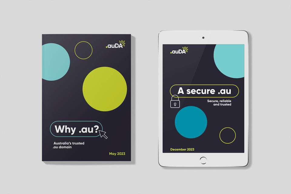 auDA required two new reports to help tell a positive story about community trust and confidence in .au. They were designed in the same style and filled with infographics to present the .au data in an engaging and informative way. The reports use just two colours from auDA's brand guidelines, with the aim being to change these each year.